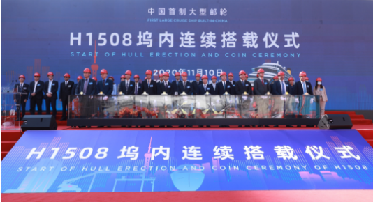 大型郵輪工程是中國船舶集團(tuán)貫徹習(xí)近平總書記重要指示精神、落實(shí)國家戰(zhàn)略、滿足人民美好生活需要的重大舉措,也是中國船舶集團(tuán)強(qiáng)化科技創(chuàng)新、促進(jìn)轉(zhuǎn)型升級(jí)、推動(dòng)高質(zhì)量發(fā)展的一號(hào)工程。2018年11月6日,中國船舶集團(tuán)與美國嘉年華集團(tuán)、意大利芬坎蒂尼集團(tuán)在首屆中國國際進(jìn)口博覽會(huì)上正式簽訂2+4艘13.5萬總噸Vista級(jí)大型郵輪建造合同,并舉行了中國船舶集團(tuán)大型郵輪項(xiàng)目工程正式啟動(dòng)儀式。這是我國首次簽訂真正意義上的大型郵輪建造合同,開啟了中國船舶工業(yè)建造大型郵輪的新時(shí)代。2019年10月18日,中國首制大型郵輪在外高橋造船正式開工點(diǎn)火進(jìn)行鋼板切割,全面進(jìn)入實(shí)質(zhì)性建造階段。一年多來,在中國船舶集團(tuán)的堅(jiān)強(qiáng)領(lǐng)導(dǎo)下,在中船郵輪科技發(fā)展有限公司、中船第九設(shè)計(jì)研究院工程有限公司、上海船舶工藝研究所等兄弟單位的大力支持下,外高橋造船經(jīng)受住了新冠肺炎疫情的洗禮和考驗(yàn),克服了物資采購、薄板車間流水線建設(shè)滯后等一系列困難,一步一個(gè)腳印,如期實(shí)現(xiàn)了塢內(nèi)連續(xù)搭載總裝的里程碑節(jié)點(diǎn)。
