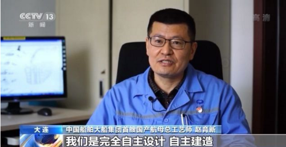 中國(guó)船舶大船集團(tuán)首艘國(guó)產(chǎn)航母總工藝師 趙育新:從第一次海試到最后交付,在這一年半的時(shí)間里沒有休息的,連軸(日以繼夜)地在這個(gè)工程上,一起拼搏。