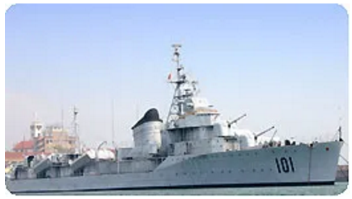 鞍山艦,舷號101,原為前蘇聯(lián)太平洋艦隊的一艘“雷擊艦”,滿載排水量2581噸。1954年10月,鞍山艦作為我國向蘇聯(lián)購買的第一艘驅(qū)逐艦駛抵青島,1992年4月24日退出現(xiàn)役,作為重要的歷史文物陳列于海軍博物館。