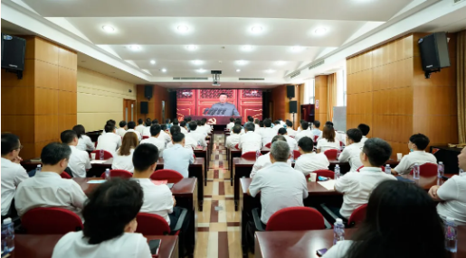 七〇二所在太湖實(shí)驗(yàn)室報(bào)告廳觀看建黨一百周年大會(huì)直播。