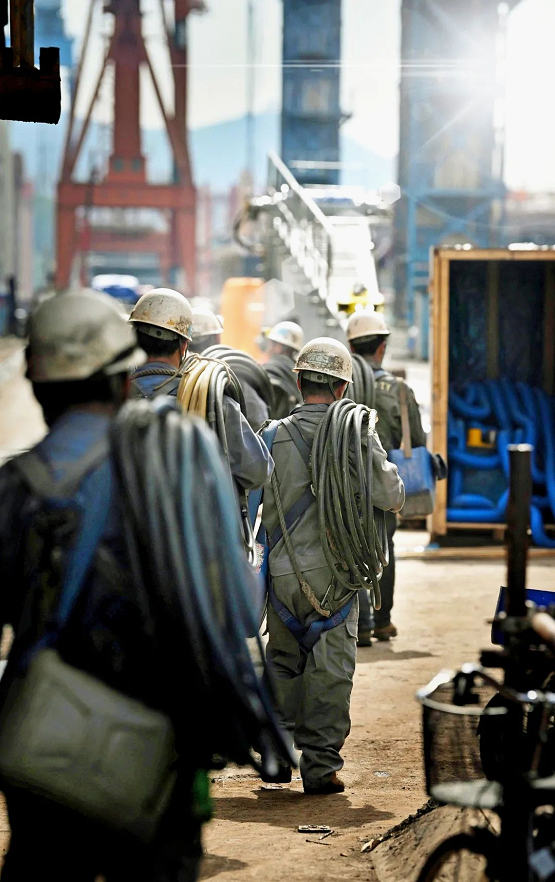 在悶熱且狹小的機(jī)艙內(nèi),一個簡單的動作,難度系數(shù)都要成倍增加,考驗的不僅是船舶電工的體力,還有毅力。