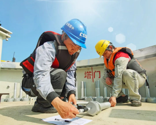 近40度的高溫天氣下,一位造船精度人堅守崗位,使用全站儀監(jiān)控船塢每個搭載總段的定位精度,保障一次搭載到位。