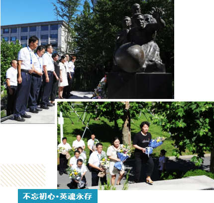 烈士家屬、抗災(zāi)搶險(xiǎn)英雄群體成員、七六〇所黨委委員共同在烈士雕像前敬獻(xiàn)鮮花。