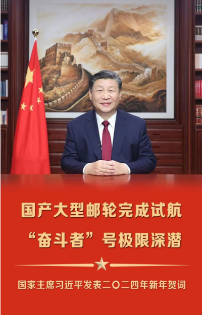 新年前夕,國家主席習(xí)近平發(fā)表了二〇二四年新年賀詞。賀詞里提及由中國船舶集團設(shè)計建造的國產(chǎn)大型郵輪完成試航、牽頭研制的“奮斗者”號極限深潛。