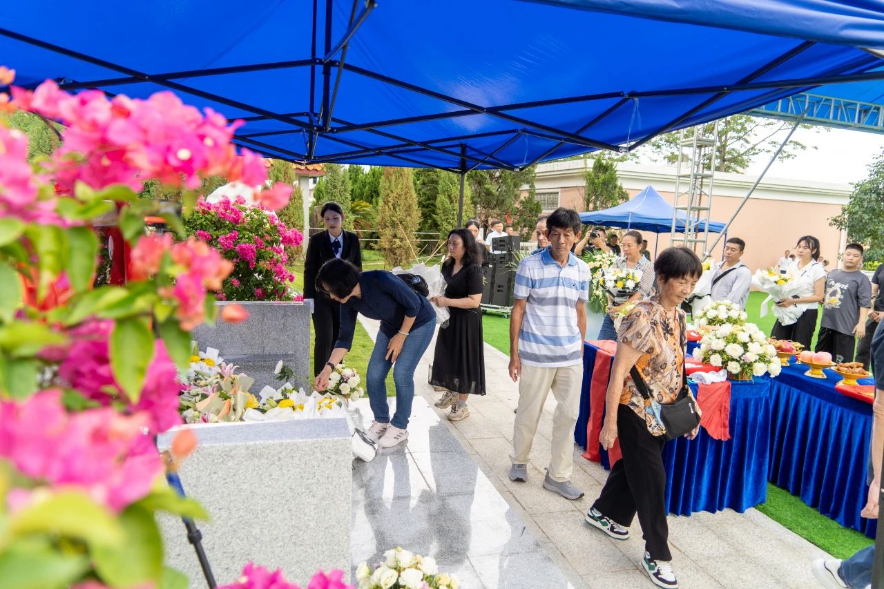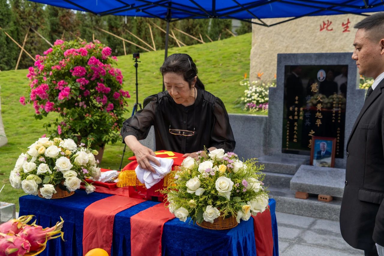 10時(shí),骨灰安放儀式正式開始。親屬代表擦拭墓碑后,在禮賓人員的引導(dǎo)下將黃旭華院士的骨灰安放進(jìn)墓穴。參加儀式的人員向黃旭華院士墓碑行三鞠躬禮,并敬獻(xiàn)鮮花。眾人以簡約但莊重的儀式,送別這位為我國核潛艇事業(yè)默默奉獻(xiàn)一生的國之脊梁。