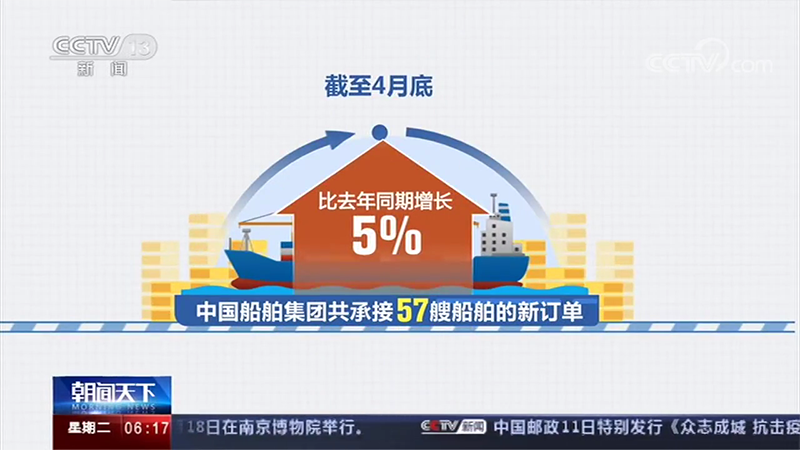 ????截至4月底,中國船舶集團(tuán)共承接57艘船舶的新訂單,比去年同期增長5%。