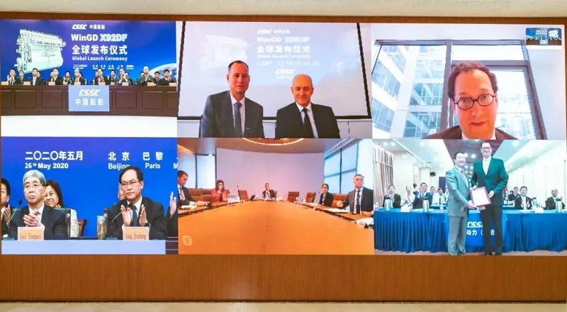 ????發(fā)布儀式采用視頻形式,在中國(guó)北京、上海,法國(guó)巴黎、馬賽和瑞士溫特圖爾全球五地遠(yuǎn)程連線同步舉行。在各方嘉賓見(jiàn)證下,WinGD X92DF通過(guò)BV(法國(guó)船級(jí)社)型式認(rèn)可,雷凡培宣布向全球發(fā)布。