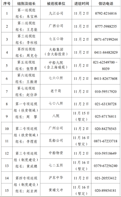 根據(jù)中國(guó)船舶集團(tuán)黨組對(duì)2020年第二輪巡視工作的統(tǒng)一部署,截止11月2日,集團(tuán)公司黨組7個(gè)常規(guī)巡視組已全部完成進(jìn)駐,對(duì)九江公司、廣西公司、七五〇場(chǎng)、大船集團(tuán)(含大船投資)、中船九院(含上海瑞苑)、七六〇所、老干局等7家單位開(kāi)展常規(guī)巡視。集團(tuán)公司黨組4個(gè)專項(xiàng)巡視組采取“一托二”方式同步對(duì)七〇八所、八院、廣州公司、昆船公司、中船物資、七二五所、滬東中華、黃埔文沖等8家單位開(kāi)展扶貧領(lǐng)域、制度建設(shè)專項(xiàng)巡視,4個(gè)專項(xiàng)巡視組目前均已進(jìn)駐首家被巡視單位。
