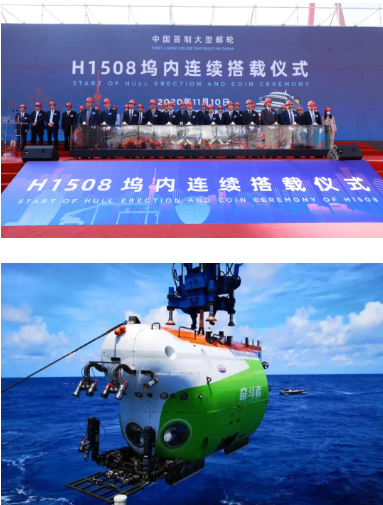 2020年,中國船舶集團在科技創(chuàng)新方面取得重要突破,核心競爭力持續(xù)提升。“奮斗者”號載人潛水器在馬里亞納海溝10909米處成功坐底,實現(xiàn)了中國載人深潛首次萬米突破;船用低速機工程原理樣機、工程樣機、關(guān)重件樣件試驗驗證取得新成果;與廣東省簽訂船舶LNG動力改造項目合作框架協(xié)議。在持續(xù)推進自主可控工程與關(guān)鍵核心技術(shù)攻關(guān)方面,中國船舶集團承擔多項攻關(guān)任務(wù)實現(xiàn)關(guān)鍵核心技術(shù)突破。在軍民品科研開發(fā)、先進制造技術(shù)研發(fā)應(yīng)用、科技創(chuàng)新基礎(chǔ)夯實方面,中國船舶集團也開展了大量工作,并取得顯著成效。
