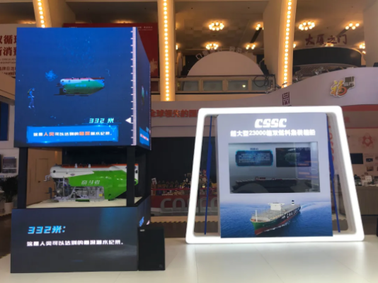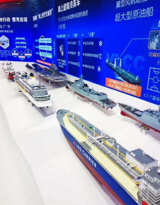 這次中國船舶集團(tuán)展區(qū)以“向海圖強(qiáng),創(chuàng)新引領(lǐng)”為主題,以“全面建設(shè)世界一流船舶集團(tuán)”的戰(zhàn)略目標(biāo)和“引領(lǐng)行業(yè)發(fā)展、支撐國防建設(shè)、服務(wù)國家戰(zhàn)略”的企業(yè)使命為主線,圍繞具有代表性、突破性、標(biāo)志性、引領(lǐng)性的自主品牌,以及高質(zhì)量裝備和工程項目,全面展示集團(tuán)公司在穩(wěn)定經(jīng)濟(jì)發(fā)展、帶動科技創(chuàng)新、服務(wù)民生保障、推動中國制造走向世界進(jìn)程中所取得的成就。