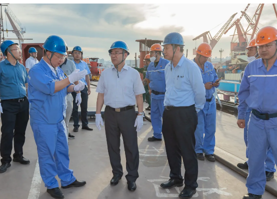 7月21日,工信部黨組成員、總工程師田玉龍到中國船舶集團有限公司大連地區(qū)成員單位調(diào)研指導(dǎo)工作。田玉龍一行先后到中國船舶集團第七六〇研究所、大連船舶重工集團有限公司實地考察了有關(guān)試驗場和在建船舶,聽取了兩家單位整體發(fā)展情況特別是科技創(chuàng)新方面的工作匯報,并對下一步工作提出要求。