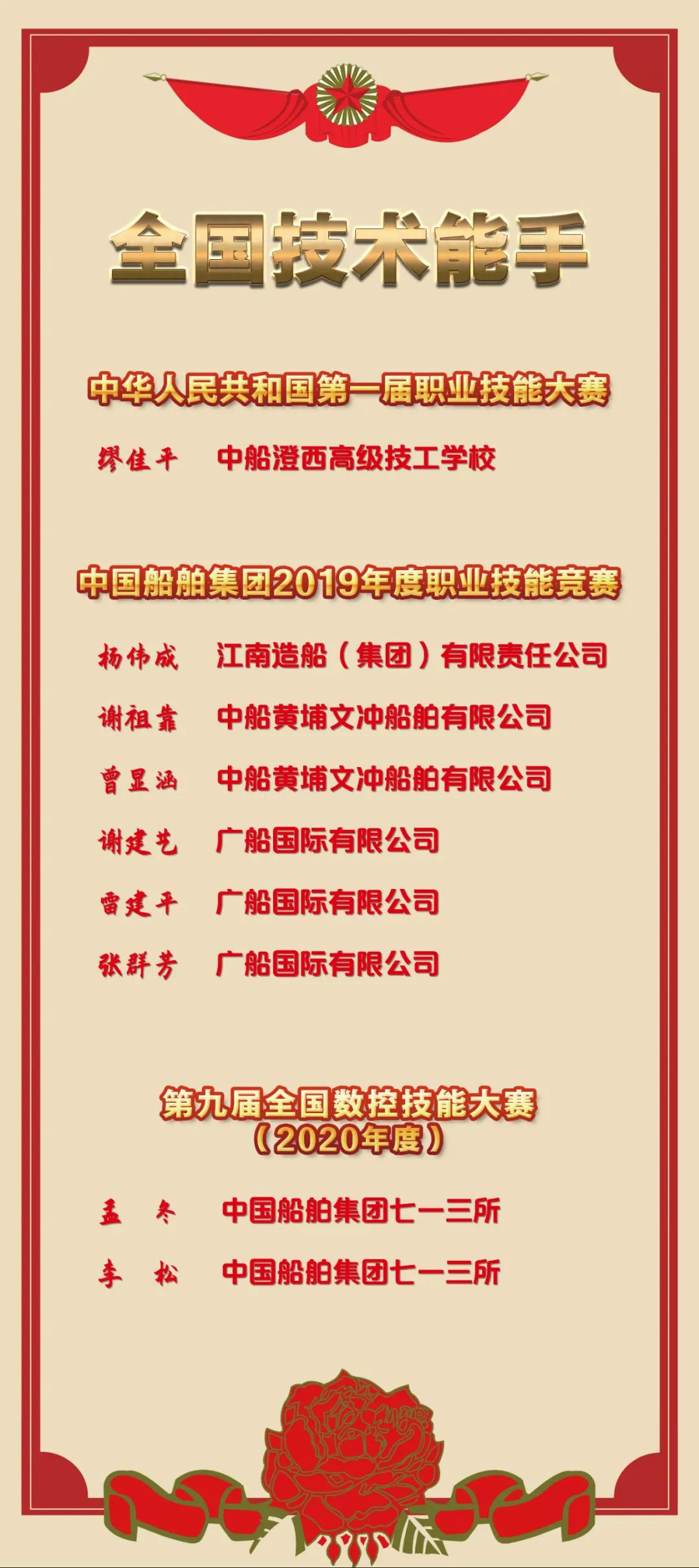 船舶高技能人才又獲表彰。中國(guó)船舶集團(tuán)“全國(guó)技術(shù)能手”再添 9 人!