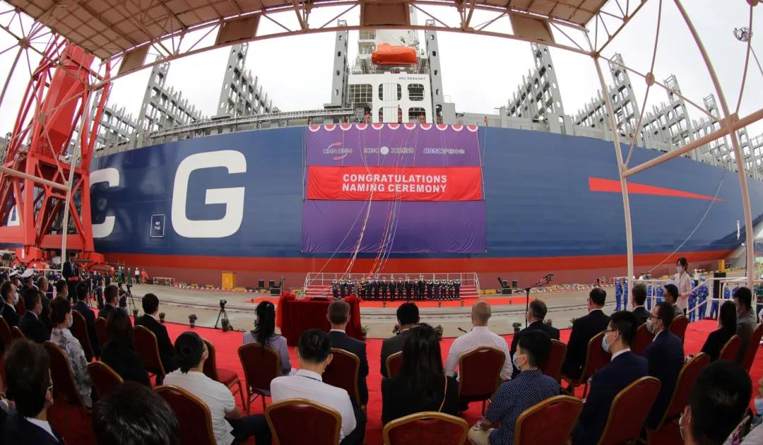 8月27日,由中國船舶集團有限公司旗下滬東中華聯(lián)合中船貿(mào)易為法國達飛海運集團建造的15000TEU超大型集裝箱系列船首制船“達飛·和風(fēng)”號命名交付。這是中法兩國船海巨頭全面落實2019年中國國家主席習(xí)近平和法國總統(tǒng)馬克龍見證簽署的戰(zhàn)略合作框架協(xié)議的最新成果。同時,也標志著“CSSC超大型箱船譜系”又添“新丁”,實現(xiàn)了對全球超大型集裝箱船發(fā)展的引領(lǐng)。