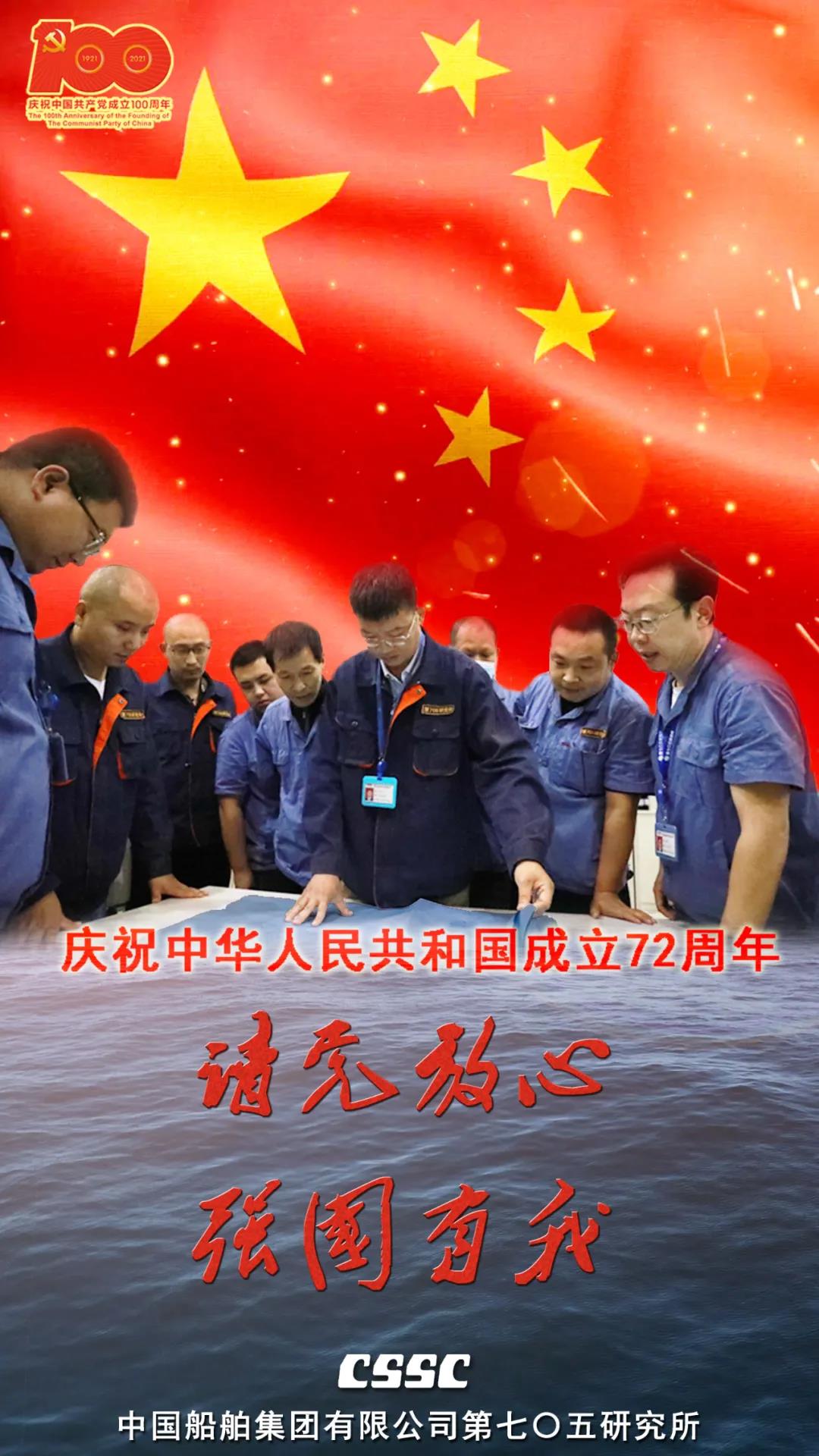 72年篳路藍縷,72年風雨兼程,正值建黨百年之際,恰逢新中國72周年華誕,中國船舶七二六所為祖國獻上最真摯的祝福!祝福偉大祖國繁榮昌盛!七二六人將繼續(xù)用智慧和汗水譜寫水聲華章,用創(chuàng)新和拼搏開拓新時代新征程,為建設海洋強國貢獻磅礴力量!
