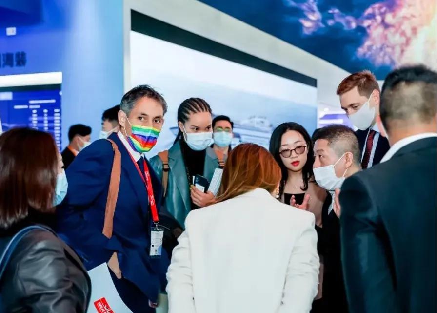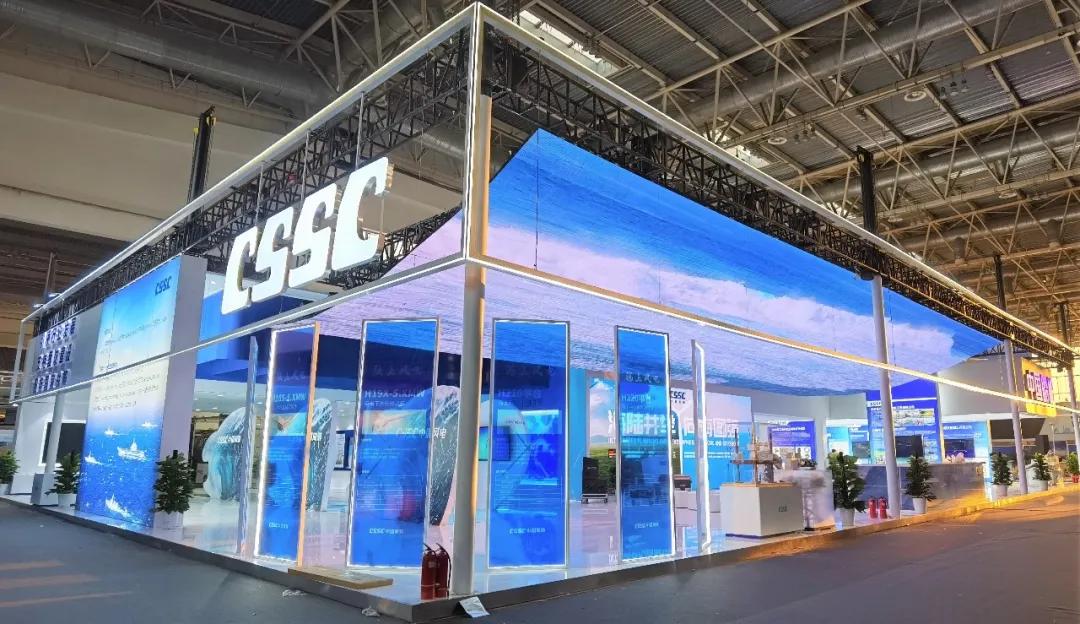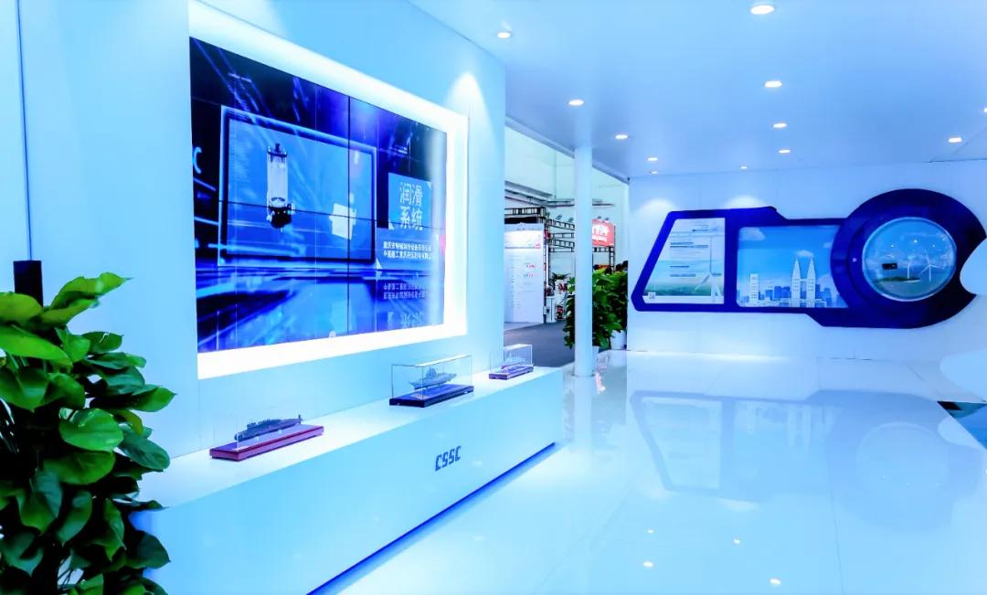 中國船舶集團展臺摒棄了“傳統(tǒng)色彩矩陣”,用“深海藍”加 “風機白”打造出大氣磅礴的開合式復合空間域,細節(jié)上則采用生態(tài)為先、大道至簡、科技為尚三大設計語言,將“風傳送”“海推動”“碳排放”業(yè)務生態(tài)鏈條進行了全方位的解構,吸引了眾多觀展人士駐足。