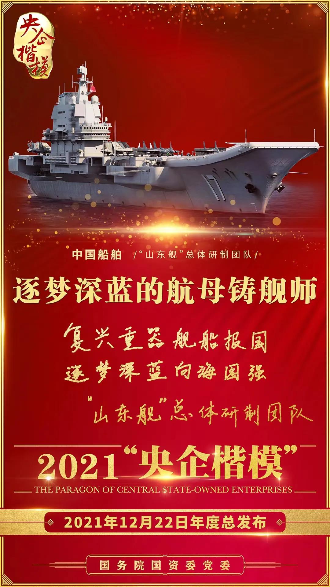 12月22日,國務(wù)院國資委黨委舉行2021年第二批“央企楷?!卑l(fā)布暨年度總發(fā)布儀式,中國船舶“山東艦”總體研制團(tuán)隊榮獲2021年“央企楷?!睒s譽(yù)稱號。繼“奮斗者”號萬米載人潛水器研發(fā)團(tuán)隊獲評2020年“央企楷?!睒s譽(yù)稱號后,中國船舶集團(tuán)再獲此殊榮。