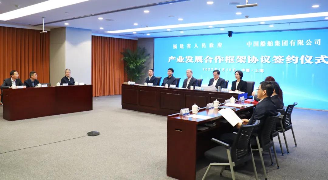 1月18日,中國船舶集團(tuán)有限公司與福建省人民政府通過“云簽約”方式簽署戰(zhàn)略合作協(xié)議。中國船舶集團(tuán)黨組書記、董事長雷凡培,黨組副書記、總經(jīng)理?xiàng)罱鸪桑h組副書記、董事杜剛,黨組成員、總會計師賈海英,黨組成員、副總經(jīng)理盛紀(jì)綱;福建省委書記尹力,省委副書記、代省長趙龍,省委常委、常務(wù)副省長郭寧寧,省委常委、秘書長吳偕林,副省長康濤出席簽約儀式。盛紀(jì)綱、郭寧寧分別代表雙方在協(xié)議上簽字。