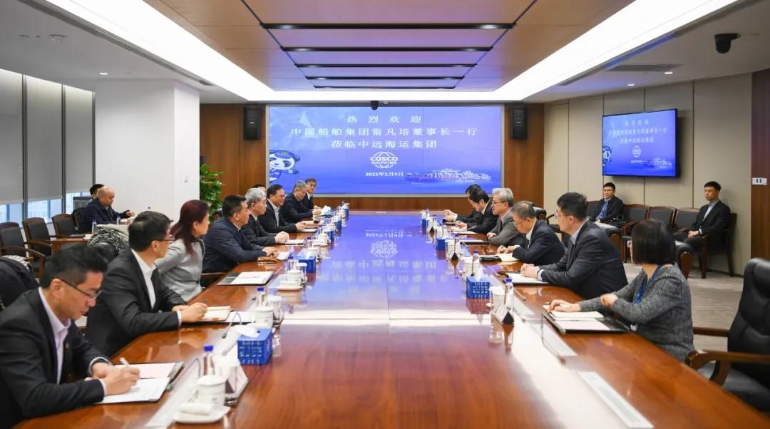 2月9日,中國船舶集團(tuán)有限公司黨組書記、董事長雷凡培,黨組副書記、總經(jīng)理楊金成一行赴中遠(yuǎn)海運(yùn)大廈拜會中國遠(yuǎn)洋海運(yùn)集團(tuán)有限公司黨組書記、董事長萬敏,黨組副書記、總經(jīng)理付剛峰。雙方互賀壬寅虎年新春,圍繞深入貫徹落實(shí)國家重大戰(zhàn)略,就進(jìn)一步加強(qiáng)綠色燃料技術(shù)研發(fā)應(yīng)用、船舶與航運(yùn)業(yè)全產(chǎn)業(yè)鏈構(gòu)建等領(lǐng)域的交流合作,攜手推動我國航運(yùn)業(yè)和造船業(yè)高質(zhì)量發(fā)展進(jìn)行了深入探討并達(dá)成廣泛共識。中國船舶集團(tuán)黨組成員、副總經(jīng)理孫偉、盛紀(jì)綱,中遠(yuǎn)海運(yùn)集團(tuán)黨組成員、副總經(jīng)理、總會計師孫云飛參加會談。