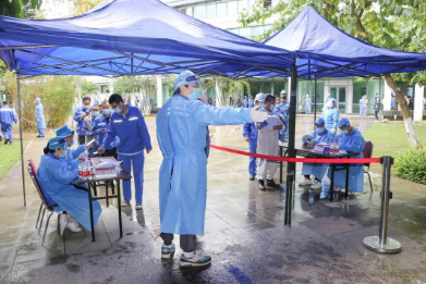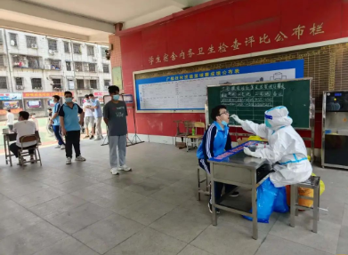 地處市區(qū)的廣州公司,迅速組建了一支以黨員為主的志愿者服務隊,助力所在社區(qū)(鶴園居委會)開展全員常規(guī)核酸檢測現(xiàn)場服務工作,以實際行動配合完成了6000多名居民核酸檢測任務。該公司職教事業(yè)部2所學校2000余名學生分轄荔灣、黃埔兩區(qū),學校教職工主動作為,積極配合醫(yī)護人員維護現(xiàn)場秩序、信息登記、查核健康碼等,順利完成2輪全員核酸檢測工作。