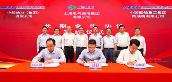 2022年9月30日,中國船舶集團(tuán)旗下中船動(dòng)力(集團(tuán))有限公司、中國船舶重工集團(tuán)柴油機(jī)有限公司與上海電氣集團(tuán)旗下上海電氣核電集團(tuán)有限公司在上海簽署了長(zhǎng)期合作協(xié)議。中國船舶集團(tuán)黨組成員、副總經(jīng)理盛紀(jì)綱,上海電氣集團(tuán)黨委委員、副總裁金孝龍出席簽約儀式。