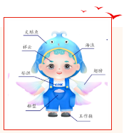 設(shè)計(jì)說明:該作品取自《山海經(jīng)》中飛魚——文瑤。相傳文瑤魚出自泰器山,此魚長著魚的身體,鳥的翅膀,飛翔東天門與西天門之上,遨游在東海和西海之間。文瑤魚乃是吉祥如意的象征,相傳其所到之處風(fēng)調(diào)雨順、五谷豐登,船寶設(shè)計(jì)中加入云紋,如意紋,錢紋寓意中國造船業(yè),吉祥如意,鵬程萬里。海寶以Q版造型生動展現(xiàn)了其活潑可愛、積極熱情服務(wù)大眾的美好形象,以文瑤魚的形式化身造船工匠,體現(xiàn)我們造船人求真務(wù)實(shí)、攻堅(jiān)克難、開拓創(chuàng)新、拼搏奉獻(xiàn)的精神力量,積極營造正能量。