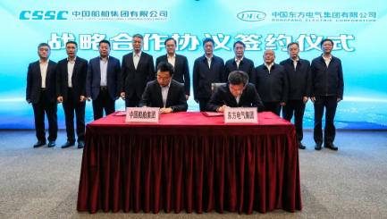 11月3日,中國船舶集團有限公司與中國東方電氣集團有限公司在滬簽署戰(zhàn)略合作協(xié)議。中國船舶集團黨組副書記、總經(jīng)理楊金成,黨組成員、副總經(jīng)理盛紀綱,東方電氣集團黨組書記、董事長俞培根,黨組成員、副總經(jīng)理李忠軍出席簽約儀式。盛紀綱、李忠軍分別代表雙方在協(xié)議上簽字。