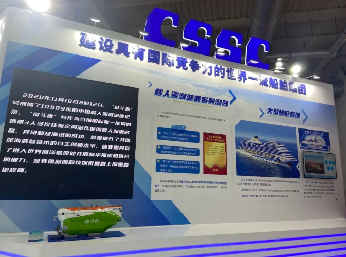 在重大科技專(zhuān)項(xiàng)工程展區(qū),中國(guó)船舶集團(tuán)集中展示了在深??茖W(xué)研究和海洋資源開(kāi)發(fā)領(lǐng)域深化實(shí)施的“蛟龍”號(hào)、“深海勇士”號(hào)、“奮斗者”號(hào)三型載人深潛裝備等一批重大科技專(zhuān)項(xiàng)工程,以及取得的突破性、標(biāo)志性的成果。其中,展會(huì)現(xiàn)場(chǎng)展示的“奮斗者”號(hào)創(chuàng)造了10909米的中國(guó)載人深潛深度紀(jì)錄。