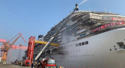 船舶建造過(guò)程中動(dòng)火作業(yè)多、交叉作業(yè)多、有限空間多,消防安全一直以來(lái)都是企業(yè)安全生產(chǎn)工作的重點(diǎn)。本次演練選取大型郵輪作為演練對(duì)象,情景模擬船上發(fā)現(xiàn)火情后,外高橋造船以及聯(lián)合演練單位的消防隊(duì)伍實(shí)施協(xié)同救援,包括初期火情應(yīng)對(duì)、應(yīng)急報(bào)告、船上人員疏散、被困人員搜救、滅火等內(nèi)容,檢驗(yàn)了企業(yè)應(yīng)對(duì)突發(fā)火情的快速反應(yīng)能力和協(xié)同作戰(zhàn)能力。