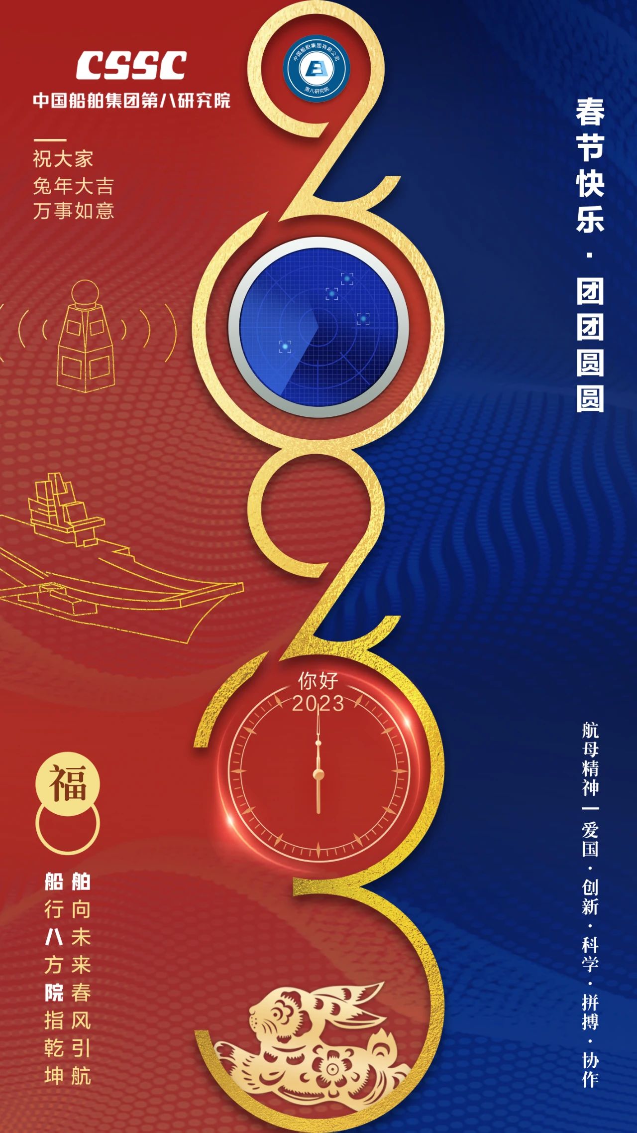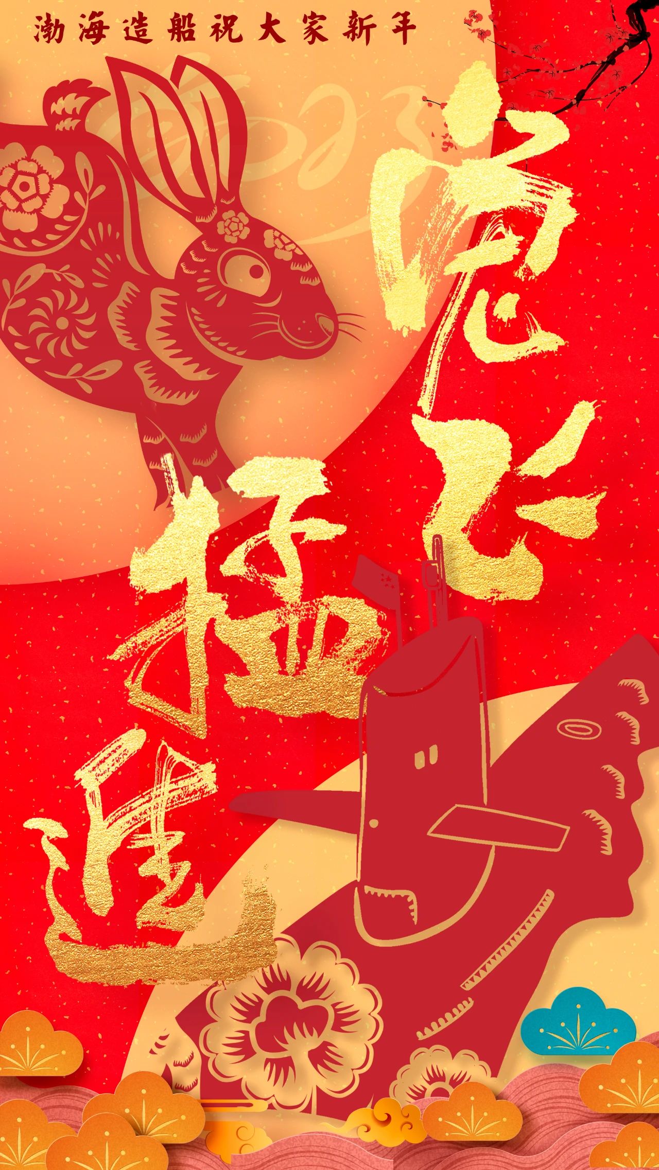 渤海造船的拜年海報(bào)以紅色背景為基礎(chǔ),奠定喜慶祥和的節(jié)日氛圍,畫(huà)面主體采用中國(guó)傳統(tǒng)民間剪紙藝術(shù),將飛騰的瑞兔與破浪的國(guó)之重器有機(jī)結(jié)合,讓我們2023年突飛猛進(jìn),大展宏圖!