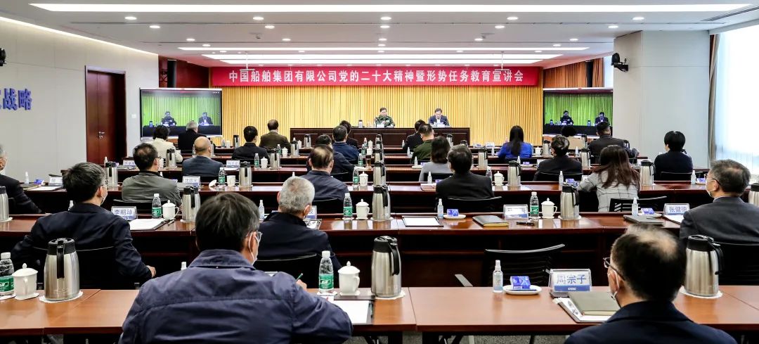1月30日,中國船舶集團(tuán)有限公司召開黨的二十大精神暨形勢任務(wù)教育宣講會,動員集團(tuán)上下全面準(zhǔn)確領(lǐng)會黨的二十大精神,深刻認(rèn)識當(dāng)前世界百年未有之大變局,更好把握當(dāng)前國際國內(nèi)形勢,進(jìn)一步團(tuán)結(jié)帶領(lǐng)廣大干部職工踔厲奮發(fā)、勇毅前行,加快推進(jìn)世界一流船舶集團(tuán)建設(shè)。中國船舶集團(tuán)黨組副書記、總經(jīng)理楊金成主持會議,黨組副書記、董事杜剛,黨組成員、副總經(jīng)理孫偉,紀(jì)檢監(jiān)察組組長、黨組成員李佳穎,黨組成員、總會計師賈海英,黨組成員、副總經(jīng)理盛紀(jì)綱出席會議。會議邀請十三屆全國政協(xié)常委、提案委員會副主任,中央軍委聯(lián)合參謀部原上將副總參謀長戚建國作宣講報告。