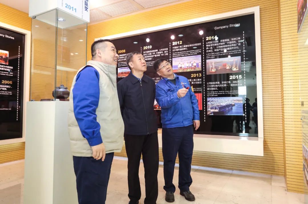 在外高橋造船展廳,溫剛聽(tīng)取了外高橋造船發(fā)展歷程、戰(zhàn)略定位和主建產(chǎn)品等內(nèi)容的匯報(bào)。在國(guó)產(chǎn)大型郵輪首制船建設(shè)現(xiàn)場(chǎng),溫剛聽(tīng)取了建造進(jìn)度匯報(bào),并安排部署下一步工作。座談會(huì)上,溫剛聽(tīng)取了外高橋造船高質(zhì)量發(fā)展戰(zhàn)略、生產(chǎn)經(jīng)營(yíng)情況及黨建重點(diǎn)特色工作的匯報(bào)。