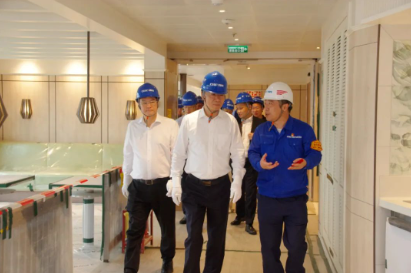 辛國(guó)斌一行深入考察國(guó)產(chǎn)首制大型郵輪建造現(xiàn)場(chǎng),實(shí)地了解大型郵輪工程進(jìn)展和技術(shù)攻關(guān)情況,并前往集配中心對(duì)外高橋造船物流倉儲(chǔ)數(shù)字化建設(shè)和智能倉儲(chǔ)管理進(jìn)行調(diào)研。