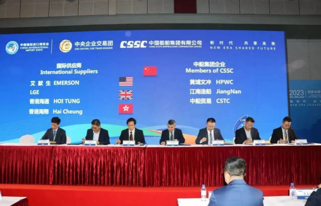 簽約儀式上,中國船舶集團(tuán)旗下7家成員單位與來自9個(gè)國家和地區(qū)的17家國際合作伙伴進(jìn)行了20個(gè)項(xiàng)目的集中簽約,累計(jì)總金額達(dá)4.82億美元,同比增長18%。具體看,交易產(chǎn)品涵蓋主機(jī)、再液化裝置、滾裝設(shè)備、液化天然氣(LNG)供氣系統(tǒng)、液貨系統(tǒng)等船舶建造領(lǐng)域的各類重要配套設(shè)備。這些簽約將有效推動(dòng)國際國內(nèi)市場(chǎng)融合互鑒,為國際船舶交易市場(chǎng)的日益繁榮貢獻(xiàn)中國船舶力量。