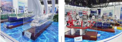 重點展示奮力摘取造船業(yè)最后一顆明珠的首制國產(chǎn)大型郵輪,以風、光、甲醇裝備等為主體的綠色船舶等高端海洋裝備、以“商業(yè)模式創(chuàng)新+創(chuàng)新技術應用”為引領的海洋文旅、深海養(yǎng)殖、海上風電等新興海洋經(jīng)濟裝備、踐行“服務國家戰(zhàn)略”企業(yè)使命的與自然資源部和廣東省合作項目成果等,展現(xiàn)了中國船舶集團作為世界第一造船集團的總體實力、企業(yè)使命。