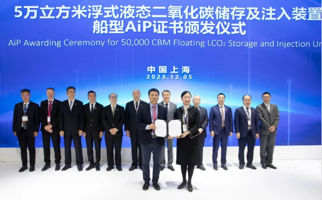 在展會現(xiàn)場,辛國斌、溫剛等參觀了集團(tuán)公司展臺,并共同見證了中國船舶集團(tuán)與法國GTT公司簽訂2023版諒解備忘錄(MOU)、大連造船海洋CCUS產(chǎn)業(yè)鏈產(chǎn)品頒證、5萬立方米浮式液態(tài)二氧化碳儲存及注入裝置船型AIP證書頒發(fā)儀式、2萬及1.2萬立方米液態(tài)二氧化碳運(yùn)輸船船型AIP證書頒發(fā)儀式。