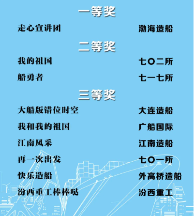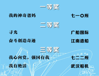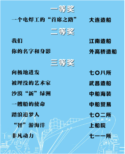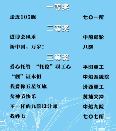 由中國船舶集團黨群工作部指導,中國船舶集團新聞宣傳中心/中國船舶報社承辦的中國船舶集團第二屆短視頻大賽圓滿落幕。經(jīng)過前期篩選,網(wǎng)絡投票,并特邀國務院國資委新聞中心、國防科工局新聞宣傳中心、中央電視臺、微博政務、中國船舶集團黨群工作部專家評審,大賽最終評出一等獎5部,二等獎10部,三等獎23部,同時評出優(yōu)秀組織獎單位6家。名單如下,快來圍觀!