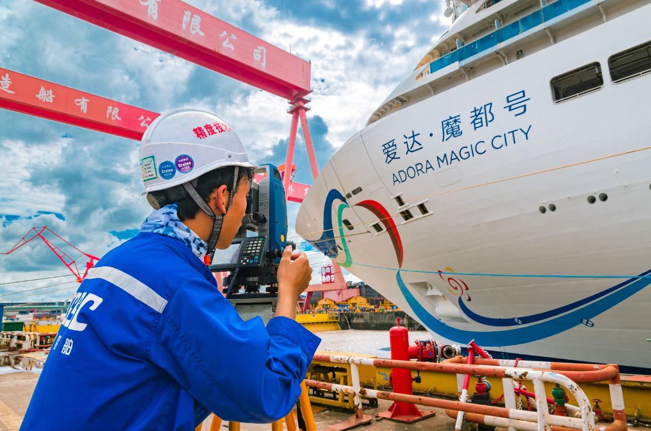 精度技術(shù)部的員工正在監(jiān)測國產(chǎn)首艘大型郵輪試航歸來時(shí)的精準(zhǔn)坐墩數(shù)據(jù)。