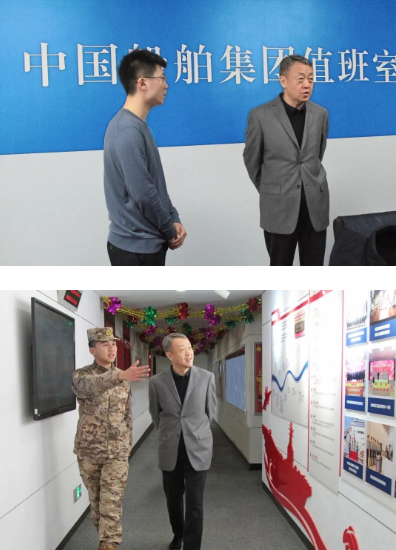 2月8日,中國船舶集團(tuán)有限公司黨組書記、董事長溫剛在集團(tuán)公司總部檢查春節(jié)總值班安排和中控室運行情況,走訪慰問堅守崗位員工。