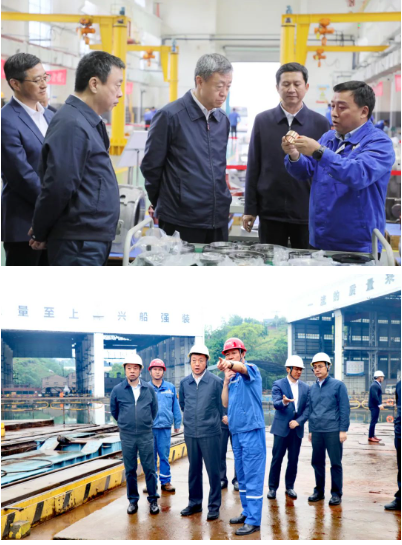 4月24-25日,中國(guó)船舶集團(tuán)有限公司黨組書記、董事長(zhǎng)溫剛前往中國(guó)船舶集團(tuán)旗下重慶公司、川船重工、長(zhǎng)征重工、前衛(wèi)科技、重齒公司調(diào)研,強(qiáng)調(diào)要深入學(xué)習(xí)貫徹習(xí)近平新時(shí)代中國(guó)特色社會(huì)主義思想和黨的二十大精神,圍繞核心使命,突出價(jià)值創(chuàng)造,不斷推動(dòng)企業(yè)實(shí)現(xiàn)高質(zhì)量發(fā)展。集團(tuán)公司黨組成員、副總經(jīng)理盛紀(jì)綱參加調(diào)研。