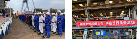 中船澄西組織各部門、車間舉行質(zhì)量誓師大會、質(zhì)量承諾簽名等活動,進一步強化全員“質(zhì)量至上”意識,將質(zhì)量責(zé)任落在筆下、放到心中。質(zhì)量部牽頭開展工程承包商質(zhì)量管理體系運行“回頭看”專項檢查活動,通過“把脈體檢”,促進施工“主力軍”不斷規(guī)范質(zhì)量管理工作,以管理能力提升促進質(zhì)量工作提高。