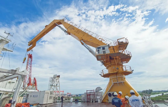 中國船舶集團旗下華南船機為“夢想”號配套重要作業(yè)設(shè)備——50噸折臂起重機,助力“夢想”起航。