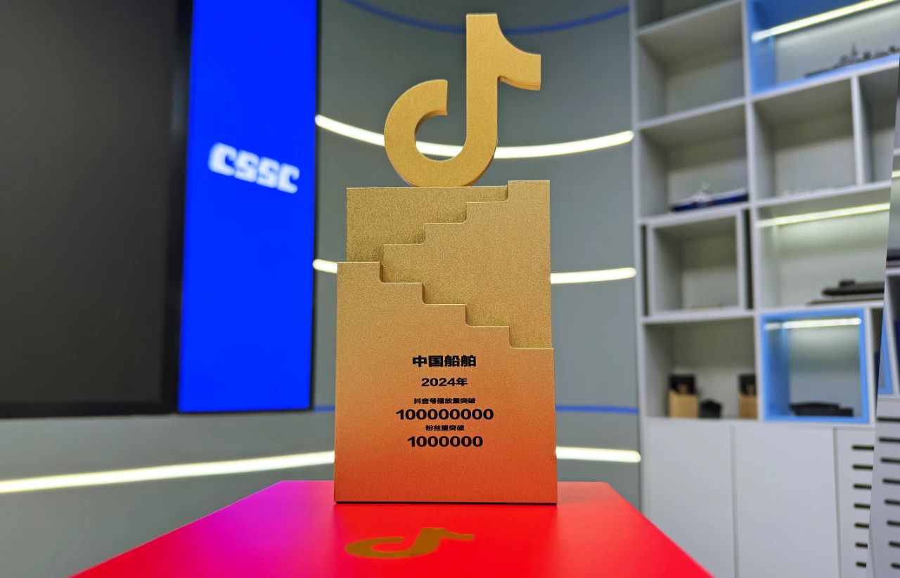 2024年,“中國(guó)船舶”抖音號(hào)獲得“播放量突破 100000000”“粉絲量突破 1000000”榮譽(yù)。