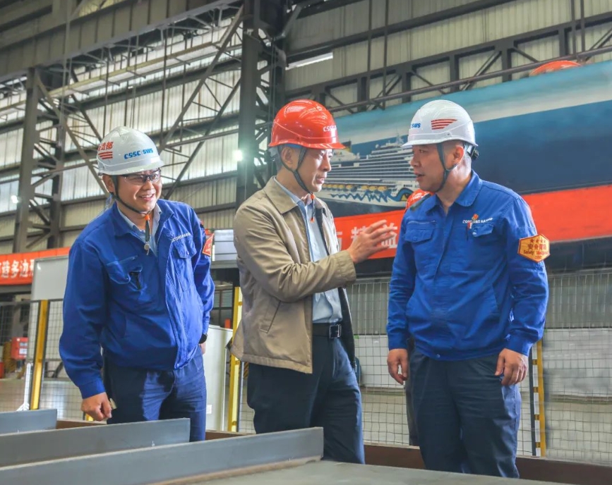 在相關(guān)二級(jí)管理單位,徐鵬調(diào)研了相關(guān)重點(diǎn)實(shí)驗(yàn)室、車間和在建的國(guó)產(chǎn)大型郵輪“愛達(dá)·花城號(hào)”,與一線職工深入交流,并聽取了單位負(fù)責(zé)人關(guān)于經(jīng)營(yíng)生產(chǎn)、公司治理、深化改革、隊(duì)伍建設(shè)、黨的建設(shè)等方面情況匯報(bào)。