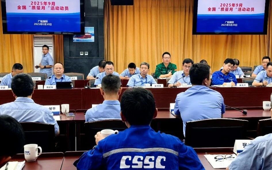 廣船國際召開2025年“質(zhì)量月”活動動員會,通過宣教結(jié)合、查改并舉的方式,從質(zhì)量意識教育培訓(xùn)、質(zhì)量提升專項行動、質(zhì)量文化建設(shè)三個方面,策劃部署了質(zhì)量門建設(shè)實施要求宣貫、“十五五”質(zhì)量專項規(guī)劃研討、“黨建+質(zhì)量”研討交流等23個活動項目,持續(xù)優(yōu)化質(zhì)量管理體系建設(shè),深入推進精細(xì)化質(zhì)量管理提升。