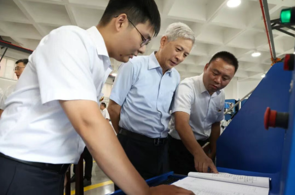 徐鵬深入科研生產(chǎn)一線,調(diào)研了相關(guān)重點車間及生產(chǎn)線,聽取了相關(guān)單位負責人關(guān)于生產(chǎn)經(jīng)營、科技創(chuàng)新、人才培養(yǎng)、戰(zhàn)略規(guī)劃、黨的建設(shè)等方面情況匯報,對相關(guān)單位改革發(fā)展取得的成績表示肯定,也指出發(fā)展存在的問題和面臨的形勢。調(diào)研期間,徐鵬還主持召開職工群眾代表座談會,詳細了解一線職工群眾急難愁盼和基層亟待解決的突出問題,并現(xiàn)場解答部分意見建議。