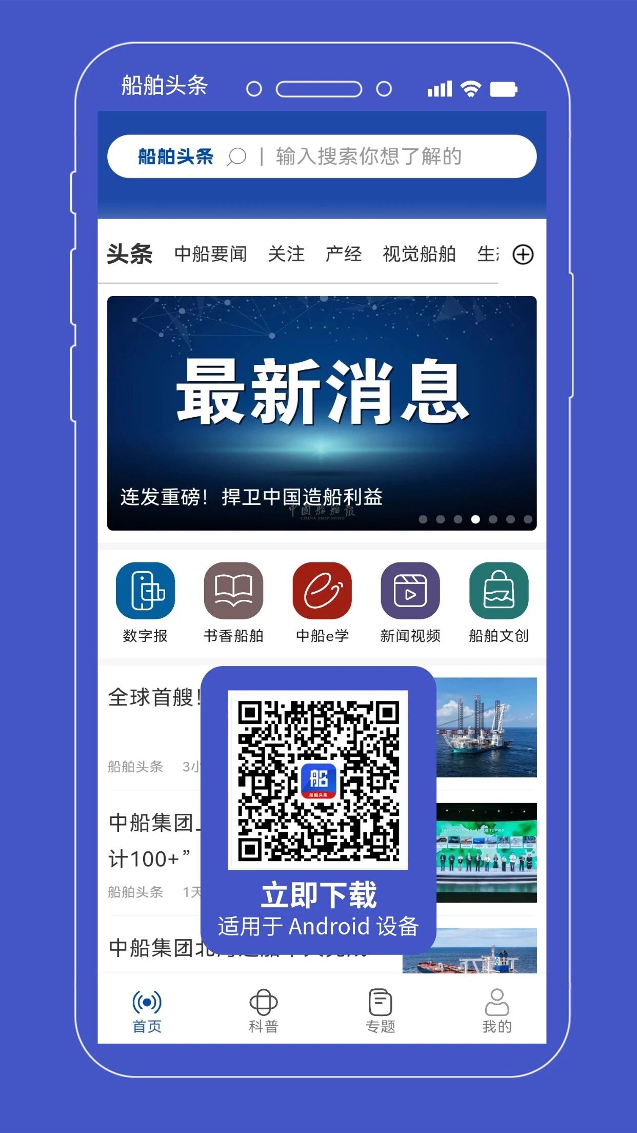 “船舶頭條”App聚焦海洋裝備產(chǎn)業(yè)鏈,集新聞發(fā)布、融合傳播、專(zhuān)業(yè)解讀、科普宣傳、企業(yè)智庫(kù)、服務(wù)聚合等功能為一體,設(shè)有“頭條”“中船要聞”“關(guān)注”“產(chǎn)經(jīng)”“視覺(jué)船舶”“生態(tài)圈”6個(gè)精品頻道以及“科普”“專(zhuān)題”等功能版塊,并鏈接“書(shū)香船舶”“《中國(guó)船舶報(bào)》數(shù)字報(bào)”“中船e學(xué)”“新聞視頻”“船舶文創(chuàng)”等多個(gè)服務(wù)端口,目前支持安卓系統(tǒng)下載使用。