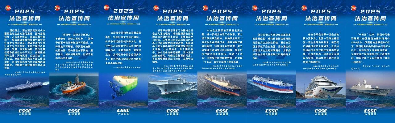 今年12月4日是第十二個(gè)國(guó)家憲法日。中國(guó)船舶集團(tuán)有限公司深入貫徹落實(shí)中央宣傳部、司法部、全國(guó)普法辦《2025年全國(guó)“憲法宣傳周”工作方案》部署要求,以“學(xué)習(xí)宣傳貫徹習(xí)近平法治思想,推動(dòng)憲法深入人心”為主題,精心組織開展2025年法治宣傳周系列活動(dòng)。活動(dòng)將學(xué)習(xí)貫徹習(xí)近平法治思想、習(xí)近平文化思想及憲法精神,與法治央企建設(shè)要求以及集團(tuán)“懸規(guī)植矩 循序善治”特色法治文化深度融合,為加快建設(shè)世界一流船舶集團(tuán)厚植法治土壤、注入強(qiáng)勁法治動(dòng)能。