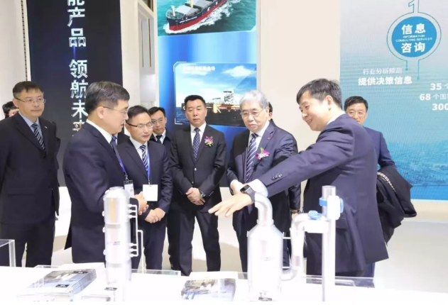 ???之后,雷凡培、楊金成陪同姜明寶、吳金城巡展,參觀了中遠(yuǎn)海運(yùn)、招商局集團(tuán)、挪威國家館等展臺(tái),并赴卡特彼勒公司、MTU公司、GTT公司開展交流。