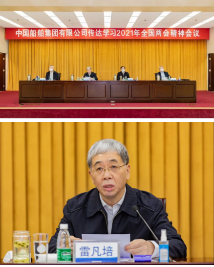 3月12日,中國船舶集團有限公司召開會議,傳達學(xué)習(xí)習(xí)近平總書記全國兩會期間重要講話精神和全國兩會精神,結(jié)合集團公司實際,研究部署貫徹落實措施。中國船舶集團黨組書記、董事長雷凡培出席會議并講話,黨組副書記、總經(jīng)理楊金成主持會議,黨組全體成員出席會議。全國政協(xié)委員董強在會上傳達了全國政協(xié)十三屆四次會議精神,全國人大代表劉征在會上傳達了十三屆全國人大四次會議精神。