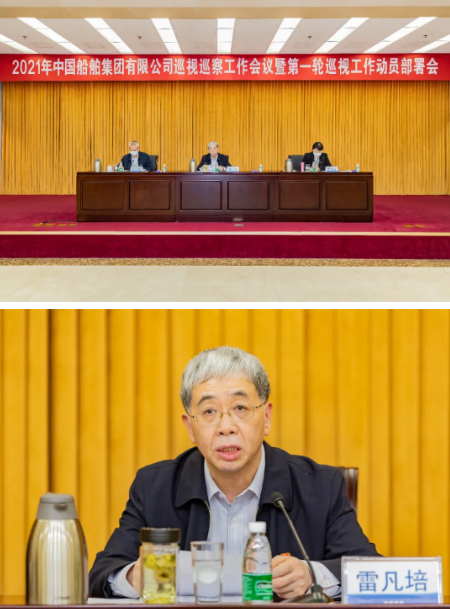 3月31日,中國船舶集團(tuán)有限公司召開2021年巡視巡察工作會(huì)議暨第一輪巡視工作動(dòng)員部署會(huì)。中國船舶集團(tuán)黨組書記、董事長、巡視工作領(lǐng)導(dǎo)小組組長雷凡培,紀(jì)檢監(jiān)察組組長、黨組成員、巡視工作領(lǐng)導(dǎo)小組副組長李佳穎出席會(huì)議并講話。